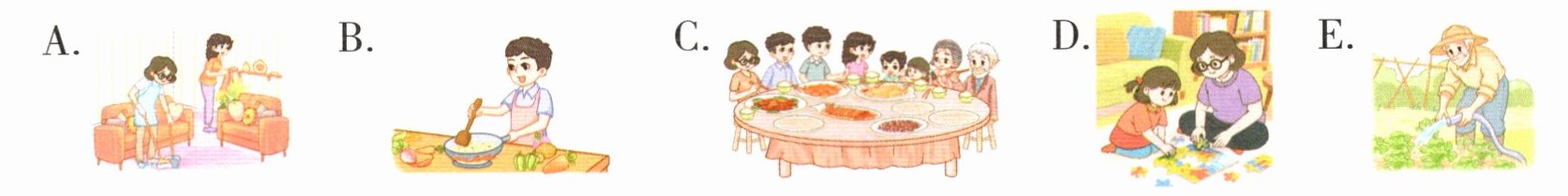三、Longlong 在描述在爷爷奶奶家拍下的照片。给下列句子选出相对应的图片。