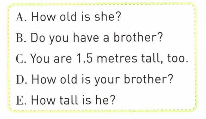 Longlong: Hi, Congcong. I know you have a little brother. 1. ____