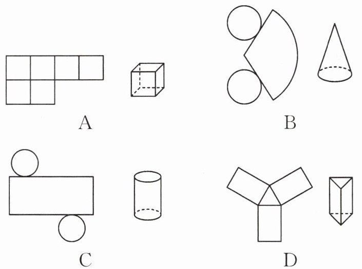 6. [2024·沈阳沈河区期末]下列选项中,左边的平面图形能折叠成右边封闭的立体图形的是(