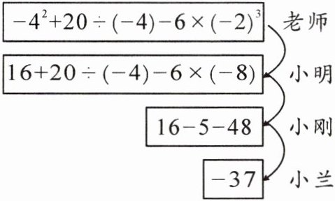 16. 老师设计了一个接力游戏,要用合作的方式完成有理数的运算,规则是:每人只能看到前一人给的式子,并进行一步计算,再将结果传递给下一人,最后完成计算。过程如图所示。