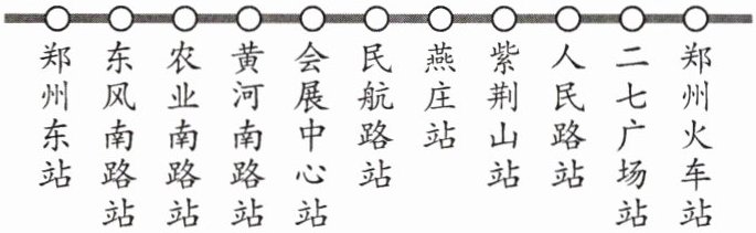 (2)已知相邻两站之间的平均距离约为1.4km,则小亮在此次志愿服务期间乘坐地铁行进的总路程约是多少千米?
