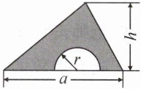 9. 如图,在一个底边长为 $a$,高为 $h$ 的三角形铁皮上剪去一个半径为 $r$ 的半圆,则剩下铁皮(阴影部分)的面积为