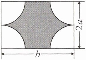 9. 如图是某小区的一块长为$b\ m$、宽为$2a\ m$的长方形草地,为美化小区,现在在该长方形草地的四个角分别修建一个半径为$a\ m$的扇形花台。用代数式表示修建后剩余草地(阴影部分)的面积为______$m^{2}$(结果保留$\pi$);当$a = 10$,$b = 40$时,剩余草地的面积是______$m^{2}$($\pi$取 3.14)。