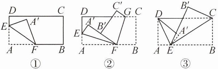 (2)希望小组将长方形纸片按图②方式折叠,$EF$,$FG$为折痕,点$A'$,$B'$,$F$恰好在同一条直线上,求$∠EFG$的度数;