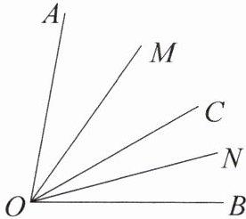 3. 如图,已知射线$OC在\angle AOB$的内部,$OM和ON分别平分\angle AOC和\angle BOC$。