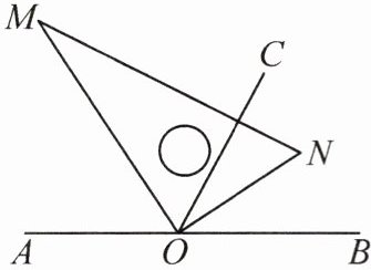 2. 已知$O为直线AB$上一点,将三角尺$MON$按如图所示的方式放置,且直角顶点在$O$处,在$\angle MON内部作射线OC$,且$OC恰好平分\angle MOB$。