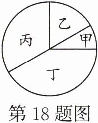 18. 如图,甲,乙,丙,丁四个扇形的面积之比为 $ 1:2:4:5 $,则扇形丁的圆心角的度数是
