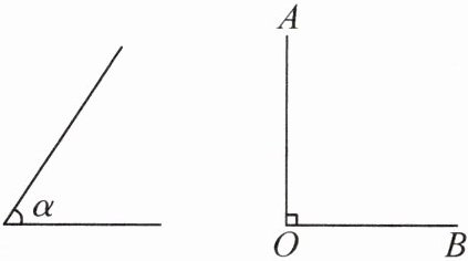 16. 如图,已知锐角 $ \angle \alpha $ 和直角 $ \angle AOB $,在 $ \angle AOB $ 内部求作 $ \angle AOC $,使 $ \angle AOC + \angle \alpha = 90^{\circ} $。