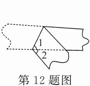 12. 如图,一条纸带的上下两边都是直的,将纸带折叠,若 $ \angle 1 = 65^{\circ} $,则 $ \angle 2 $ 的度数为