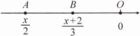 9. 如图,$O$为数轴上的原点,点$A$,$B表示的数分别是\frac{x}{2}$,$\frac{x + 2}{3}$。若$B$,$O两点之间的距离等于A$,$B$两点之间的距离,则$x$的值是