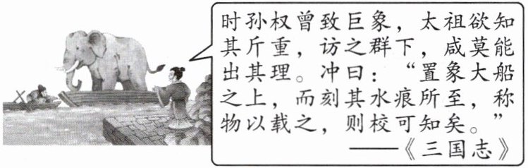 时孙权曾致巨象,太祖欲知其斤重,访之群下,咸莫能出其理。冲曰:“置象大船之上,而刻其水痕所至,称物以载之,则校可知矣。”