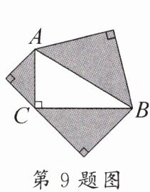 9. 如图,分别以 $ Rt \triangle ABC $ 的三边为斜边向外作等腰直角三角形。若斜边 $ AB = 4 $,则图中阴影部分的面积和为