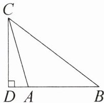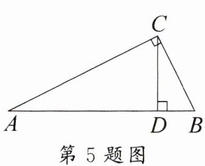5. 如图,在 $ Rt \triangle ABC $ 中,$ \angle ACB = 90° $,$ CD \perp AB $ 于点 $ D $。若 $ BD = 2 $,$ CD = 4 $,则 $ AD = $