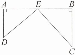 7. [2025·鹤壁期末改编]如图,高速公路上的 $ A $,$ B $ 两点相距 $ 14 $ km,$ C $,$ D $ 为两村庄,已知 $ DA = 6 $ km,$ CB = 8 $ km,$ DA \perp AB $ 于点 $ A $,$ CB \perp AB $ 于点 $ B $,现要在 $ AB $ 上建造一个服务站点 $ E $,使得 $ C $,$ D $ 两村庄到站点 $ E $ 的距离相等,求 $ AE $ 的长。