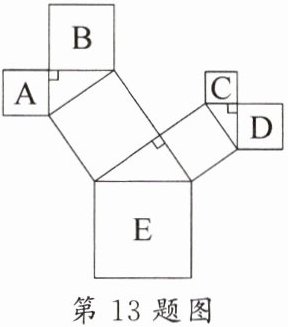 13. [2025·武汉江岸区期中]如图是一株美丽的“勾股树”,其中所有的四边形都是正方形,所有的三角形都是直角三角形。若正方形 $ A $,$ B $,$ C $,$ D $ 的面积分别为 4,6,2,4,则最大的正方形 $ E $ 的面积是