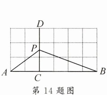 14. [转化思想]如图,方格纸中小方格的边长均为 1,$ P $ 为 $ CD $ 上任意一点,则 $ PB^{2} - PA^{2} $ 的值为