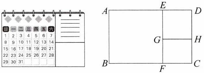 15. 新考向 情境题·台历 如图是添加了便签的台历,正方形$ABFE$为日历区,正方形$EGHD$为备忘录区,长方形$GFCH$为便签区,已知日历区的面积为$270cm^{2}$,备忘录区的面积为$80cm^{2}$,则便签区的面积为______$cm^{2}$。
