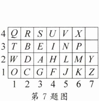 7. 新考向 跨英语 两位同学拿着如图所示的密码表玩听声音猜动物的游戏,若听到“咚咚—咚咚,咚—咚,咚咚咚—咚”,对应的字母是$DOG$,即表示的动物是“狗”,则听到“咚咚—咚,咚咚咚—咚咚,咚—咚咚咚”时,表示的动物是