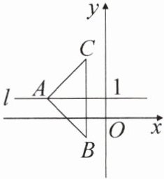 8. 如图,在平面直角坐标系中,直线 $ l $ 过点 $ A $ 且平行于 $ x $ 轴,交 $ y $ 轴于点 $ (0,1) $,$ \triangle ABC $ 关于直线 $ l $ 对称,点 $ B $ 的坐标为 $ (-1,-1) $,则点 $ C $ 的坐标为
