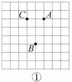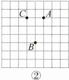 (1)若景观 $ A $,$ C $ 相距 $ 2 km $,请在图①中建立适当的平面直角坐标系(一个单位长度代表 $ 1 km $ 长),用坐标表示 $ A $,$ B $,$ C $ 三个景观的位置:$ A $ ______,$ B $ ______,$ C $ ______。