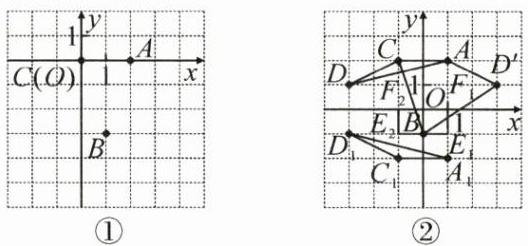 (3)在(2)的平面直角坐标系中,描出点 $ D(-3,1) $。①点 $ D $ 关于 $ y $ 轴对称的点 $ D' $ 的坐标是 ______;②在图②中画出 $ \triangle ACD $ 关于 $ x $ 轴对称的图形 $ \triangle A_1C_1D_1 $;③求四边形 $ ACBD' $ 的面积。