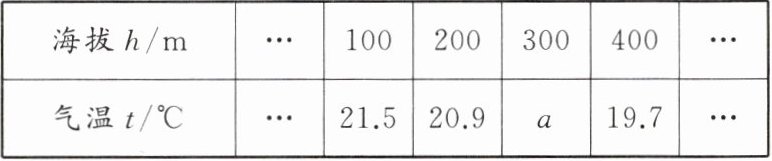 2. 我们知道:“海拔越高,气温越低”,下表是海拔 $ h $(单位:m)与气温 $ t $(单位:$ {°}C $)之间的关系。
