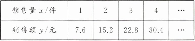 则销售量 $ x $ 每增加 1 件时,销售额 $ y $ 增加(