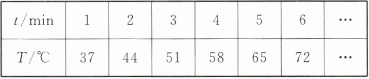 3. 新考向 情境题·烧水 在烧开水时,水温达到 $ 100 {°}C $ 水就会沸腾,下表是小红同学做“观察水的沸腾”实验时所记录的时间 $ t $(单位:min)和水温 $ T $(单位:$ {°}C $)的数据: