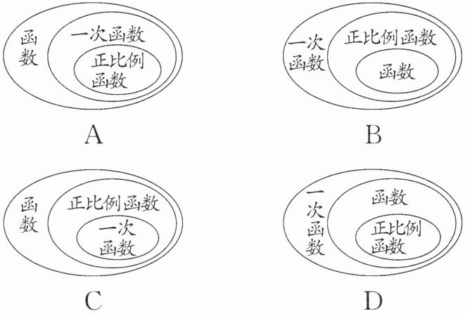 2. 函数、一次函数和正比例函数之间的包含关系是(