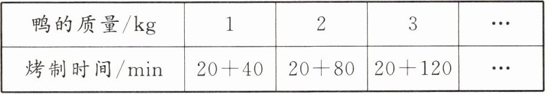 5. 新考向 情境题·烤鸭 某烤鸭店在确定烤鸭的烤制时间时,主要依据的是表中的数据: