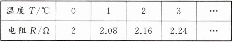 10. 新考向 跨物理·电阻 已知一段导线的电阻 $ R $(单位:$ \Omega $)与温度 $ T $(单位:$ ^ { \circ } \mathrm { C } $)之间的关系如下表,若导线的电阻 $ R $ 为 $ 4 $ $ \Omega $,则导线的温度 $ T $ 为