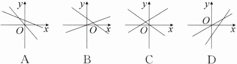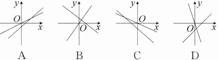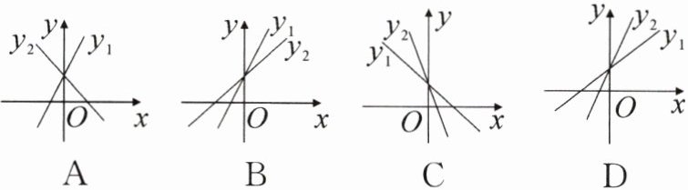 8. [2025·郑州金水区期末]已知直线 $ y_1 = k_1x + 1 $ 与直线 $ y_2 = k_2x + 1 $,$ k_1 $,$ k_2 $ 为常数且 $ k_1 < k_2 $,则两条直线在同一平面直角坐标系中的大致位置合理的是(