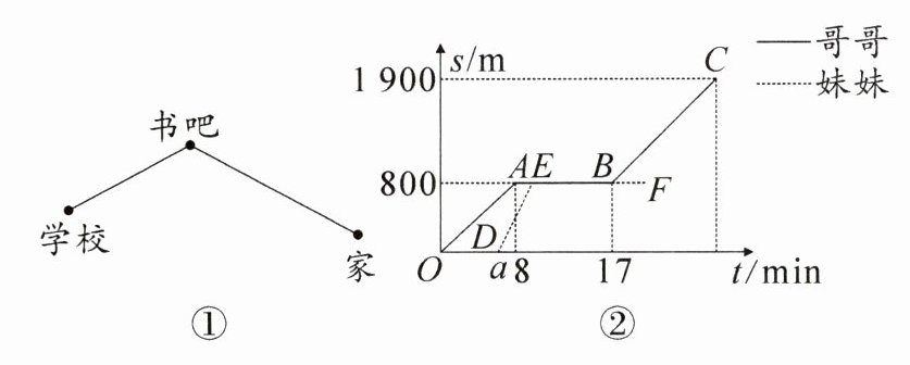 (2)已知妹妹比哥哥迟 $2 min$ 到达书吧。