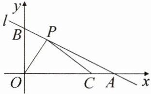 1. 如图,已知直线$ l:y = kx + b 与 x $轴、$ y 轴分别交于 A $,$ B $两点,且$ OA = 2OB = 8 $,点$ C(6,0) 在 x $轴上,$ P 是直线 l $上一点,连接$ OP 和 CP $,当点$ P 的横坐标为 2 $时,$ \triangle COP $的面积为