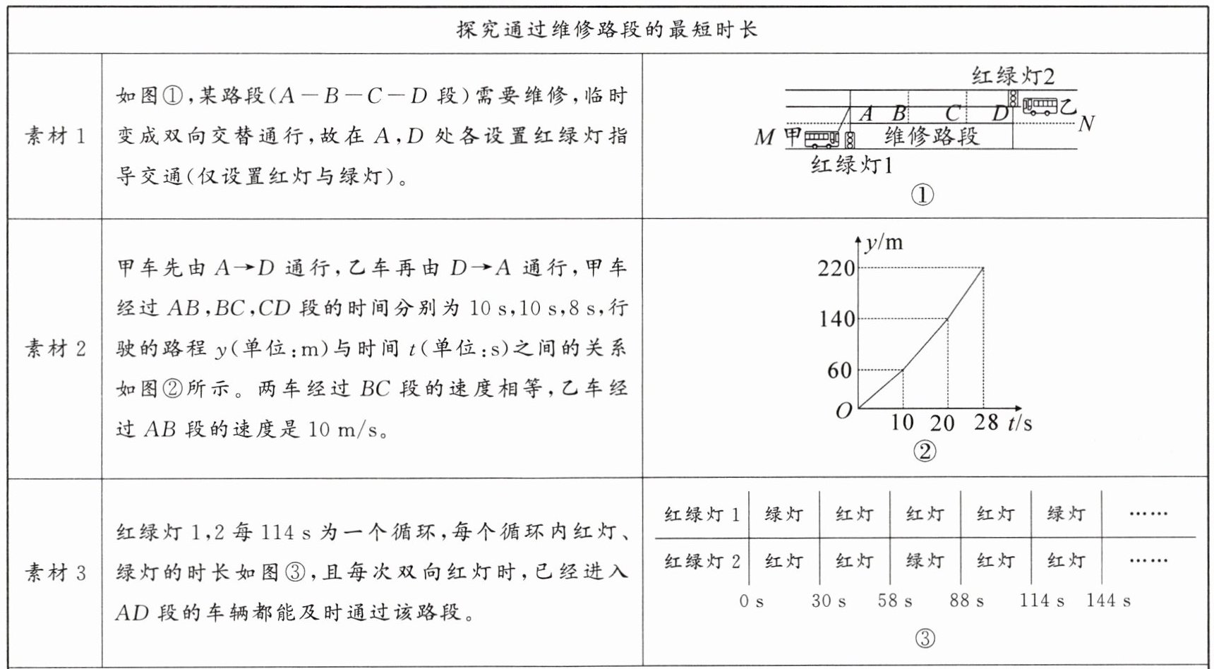 任务1:A-B-C-D段的总路程为220m。甲车经过BC段的速度为8m/s。