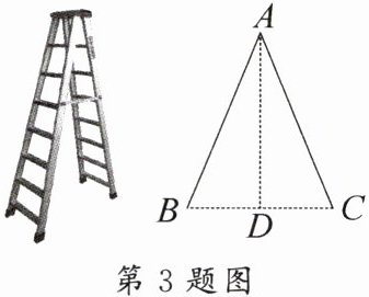 3. 新考向 情境题·人字梯 如图是一个人字梯及其侧面示意图,梯子撑开后最高点A距地面的高度AD为240 cm,两侧梯子AB,AC的长度均为260 cm,则此时梯子底端BC的距离为(