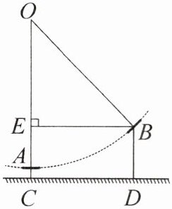 7. 新考向 数学文化·古算题 数学家程大位在他的著作《算法统宗》中写了一首计算秋千绳索长度的词《西江月》:“平地秋千未起,踏板一尺离地。送行二步恰竿齐,五尺板高离地……”题目大意:如图,秋千OA静止时,踏板离地一尺(AC= 1尺),将它往前推进两步(EB= 10尺,∠OEB= 90°),此时踏板离地五尺(BD= 5尺),求秋千绳索(OA或OB)的长度。