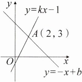 3. [2025·郑州中原区期末]如图,一次函数 $y = kx - 1$ 与 $y = -x + b$ 的图象的交点为 $A(2,3)$,则关于 $x,y$ 的二元一次方程组 $\begin{cases}kx - y = 1,\\x + y = b\end{cases} $ 的解为