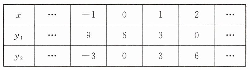 4. [2024·平顶山叶县期末]一次函数 $y_1 = k_1x + b$ 和 $y_2 = k_2x$ 的图象上一部分点的坐标如下表,则关于 $x,y$ 的方程组 $\begin{cases}y = k_1x + b,\\y = k_2x\end{cases} $ 的解为
