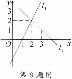 9. 新考向 开放性问题【教材 P131 随堂练习 T1 变式题】写出一个以如图所示的直线$l_1,l_2$的交点坐标为解的二元一次方程组: