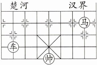 8. 新考向 传统文化·中国象棋 中国象棋文化历史悠久。如图是某次对弈的部分残局图(图中每个小正方形的边长均为$1$),建立适当的平面直角坐标系,使棋子“帅”“车”分别位于点$(-2,-1),(-5,0)$的位置,则在这个平面直角坐标系中,经过棋子“帅”和“马”所在的点的直线所对应的函数表达式为(