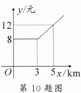 10. 某市出租车计费方法如图所示,$x$(单位:$km$ )表示行驶里程,$y$(单位:元)表示车费。若该市某乘客有一次乘出租车的里程为$17km$,则这位乘客需付租车车费