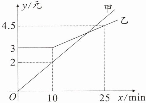 5. 新考向 情境题·共享电动车 [2025·驻马店驿城区期末改编]共享电动车是一种新理念下的交通工具。现有甲、乙两种品牌的共享电动车可供选择,手机扫码开锁,开始计时收费。若已开锁,则所收费用y(单位:元)与时间x(单位:min)之间的关系如图所示。根据图象,解答下列问题:
