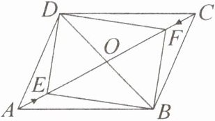 13. [易错题]如图,在$□ ABCD$中,对角线$AC$,$BD相交于点O$,动点$E以每秒1个单位长度的速度从点A出发沿AC$方向运动,同时动点$F以每秒1个单位长度的速度从点C出发沿CA$方向运动。若$AC = 12$,$BD = 8$,则经过