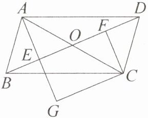 12. 如图,在$□ ABCD$中,对角线$AC与BD相交于点O$,$E$,$F分别为OB$,$OD$的中点,延长$AE至点G$,使$EG = AE$,连接$CF$,$CG$。