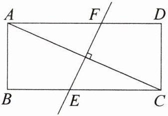 9. 如图,在矩形 $ABCD$ 中,对角线 $AC$ 的垂直平分线 $EF$ 分别交 $BC$,$AD$ 于点 $E$,$F$。若 $BE = 3$,$AF = 5$,则矩形 $ABCD$ 的周长为(