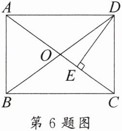 6. 如图,在矩形 $ABCD$ 中,对角线 $AC$ 与 $BD$ 相交于点 $O$,$DE\perp AC$ 于点 $E$,且 $\angle ADE:\angle CDE = 3:2$,则 $\angle BDE$ 的度数为