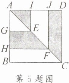 5. 如图,正方形 ABCD 的边长为 2,E,F 分别是对角线 AC 上的两点,$AI = AG$,$IJ = GH$,则图中阴影部分的面积为