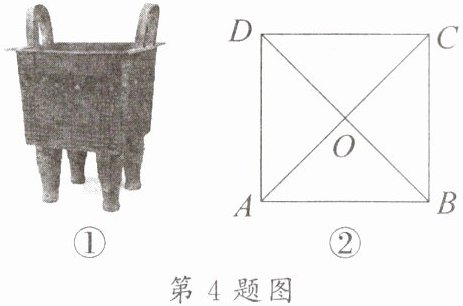 4. 新考向 传统文化·方鼎 图①所示的杜岭二号方鼎是河南博物院九大镇院之宝之一,方鼎的口呈正方形(如图②),正方形 ABCD 的对角线 AC 与 BD 相交于点 O,则下列说法不正确的是(