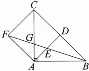 11. 如图,在 $\triangle ABC$ 中,$\angle CAB = 90^{\circ}$,$AD$ 是 $BC$ 边上的中线,以 $AD$,$CD$ 为邻边作 $□ ADCF$,连接 $BF$ 分别与 $AD$,$AC$ 相交于点 $E$,$G$。